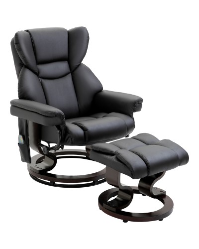 After a long day, do you dream of sinking into a comfortable and enveloping seat to forget about stress? This set with a reclining armchair and footstool offers you all the comfort you deserve! Swiveling 360° and with a stable round base, this ergonomic armchair has comfortable padding and PU leatherette upholstery. Thanks to the footstool, integrated headrest, and armrests, relaxation will be effortless.